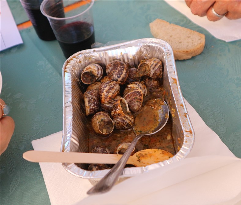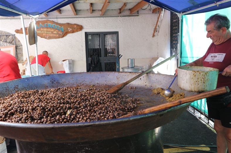 Durante la festa i visitatori hanno gustato le lumache cucinate nel tipico stile ligure, preparate con semplicità e ingredienti di altissima qualità. Nelle vie del piccolo borgo era possibile anche gustare le lumache preparate anche dagli altri esercizi del paese. L'atmosfera di festa è stata arricchita dalle numerose bancarelle, che offrivano prodotti locali e altre specialità gastronomiche, e con la possibilità di acquistare piatti di lumache portando così a casa un pezzo di questa festa culinaria unica.