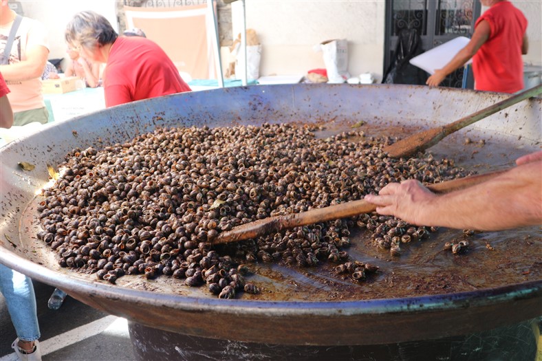 Grande l’attesa per il concorso gastronomico, che accompagna la sagra e che registra ogni un discreto numero dei concorrenti, che non sono professionisti della ristorazione, ma appassionati della cucina. Undici gli iscritti alla gara, in gran parte donne, ognuno con un piccolo segreto per rendere “più buono” un piatto che un tempo considerato un’eccellenza della cucina ed oggi è diventato un prodotto di nicchia. Le ricette in concorso rispecchiano una tradizione casalinga molto diffusa in paese perché un tempo si raccoglievano e si cucinavano in casa in una grande varietà di preparazioni. I segreti dei cuochi e delle cuoche cominciano dallo spurgo, che consiste nel mettere a digiuno le chiocciole; poi ci sono i segreti per eliminare la bava con la cottura nell’acqua o nel latte o nel brodo; c’è chi le mette prima nel congelatore per evitarne la morte cruenta dell’acqua calda, e mantenere più tenera la carne; poi ci sono le piccole ma significative differenze nella preparazione, che si divide in due grandi famiglie con o senza pomodoro.