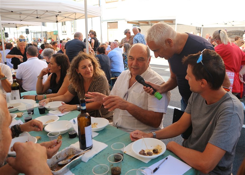 Angela Maria Zucchetto, decana della festa e autorevole componente della giuria non ha dubbi “all’inizio della festa si cucinavano senza pomodoro, semplicemente al verde ed il segreto stava nelle erbe aromatiche utilizzate, prima fra tutte la menta o la mentuccia e non eliminando completamente la bava perché era proprio dalla schiuma che si poteva capire se erano buone”.
