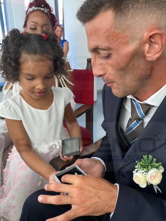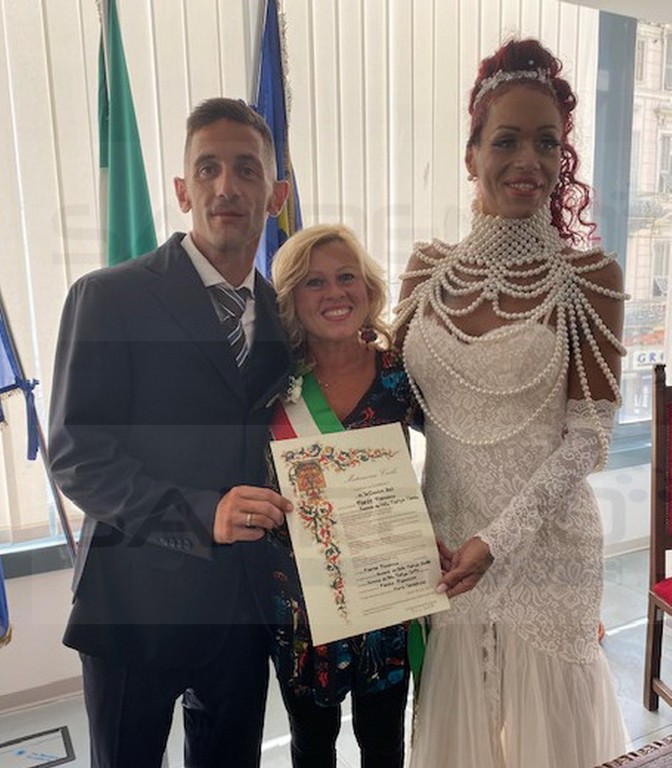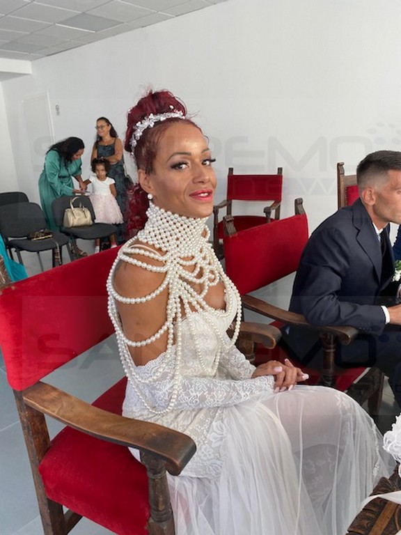 Sembra una principessa la brasiliana Thatysa Claudia Pereira Da Mota, originaria di Curitiba vicino alla capitale Brasilia. “È il giorno più bello della mia vita” commenta commossa, venerdì, nella Sala Matrimoni del Comune di Sanremo.