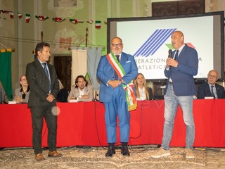 Amministrazione comunale al completo per l'importante appuntamento, mentre nel pubblico erano presenti tra gli altri il Questore Giuseppe Peritore, il comandante provinciale dei Carabinieri Marco Morganti, il senatore Gianni Berrino, la consigliere regionale Chiara Cerri, il presidente regionale della FIDAL Carlo Rosiello, il presidente della Camera di Commercio Enrico Lupi. Oltre a loro i rappresentanti anche della Guardia di Finanza e della Guardia Costiera e il sindaco di Santo Stefano al Mare, Marcello Pallini.
