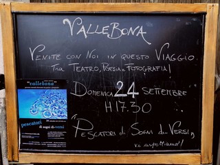 Il ricco calendario estivo proposto a Vallebona si concluderà domenica prossima, il 24 settembre, con un percorso teatrale itinerante tra poesia e fotografia: "Pescatori di Sogni di-Versi".