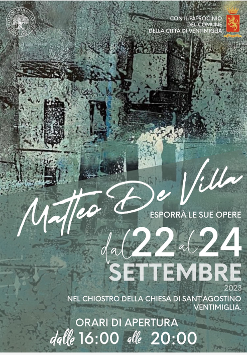 Opere pittoriche, realizzate dal giovane Matteo De Villa, verranno esposte a Ventimiglia. L'inaugurazione della mostra sarà oggi alle 16 nel chiostro della chiesa di Sant'Agostino.
