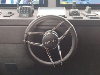 Le novità al Nautico non finiscono qui. In Anteprima mondiale Amer presenta la '950', “Un nuovo modello - spiega Barbara Amerio - celebrativo dei nostri 50 anni di attività. In questo caso abbiamo lavorato sulle altezze che sono molto generose, è una barca molto confortevole che rientra nella linea di maggiori aperture verso l'esterno, grandi spazi esterni, comodità, confort, sempre in abbinamento con le motorizzazioni IPS che sono il nostro cavallo di battaglia”.
