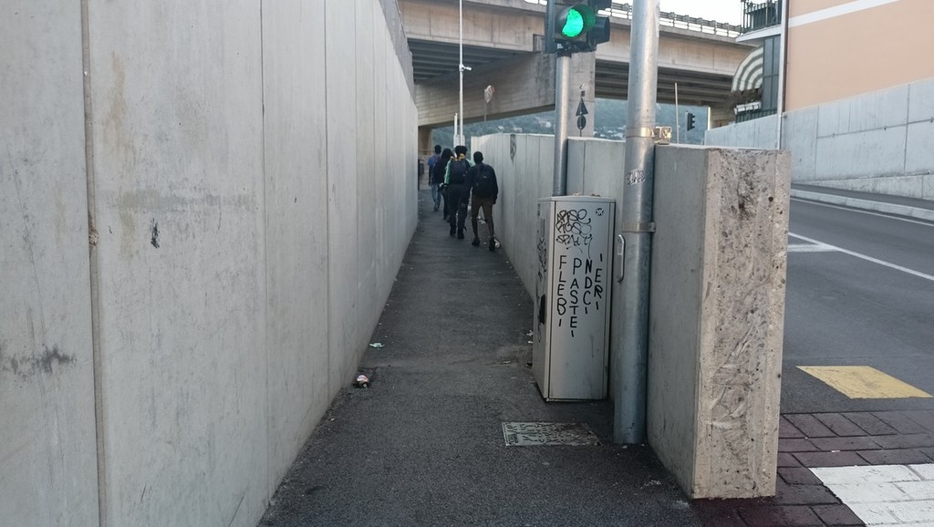 Controlli a tappeto delle forze dell'ordine, in serata, a Ventimiglia. Polizia, carabinieri e guardia di finanza hanno ispezionato le zone frequentante solitamente dai migranti, come la stazione ferroviaria, i giardini pubblici e le Gianchette.