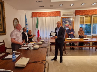 Il Consiglio Comunale di Ospedaletti, riunitosi ieri, ha consegnato le pergamene di ringraziamento a Pier Franco Rivano, Luogotenente dei Carabinieri da pochi giorni in pensione dopo aver comandato la Stazione CC di Ospedaletti per oltre trent'anni, e alla 'Confetteria Il Capriccio' per l'ultra-trentennale attività commerciale svolta.