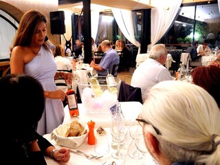 La sommelier Denise ha accompagnato i partecipanti nella scelta dei vini proponendo per iniziare uno Sciac-tra con il guazzetto e per terminare un Pigato abbinato alla Lampuga.
