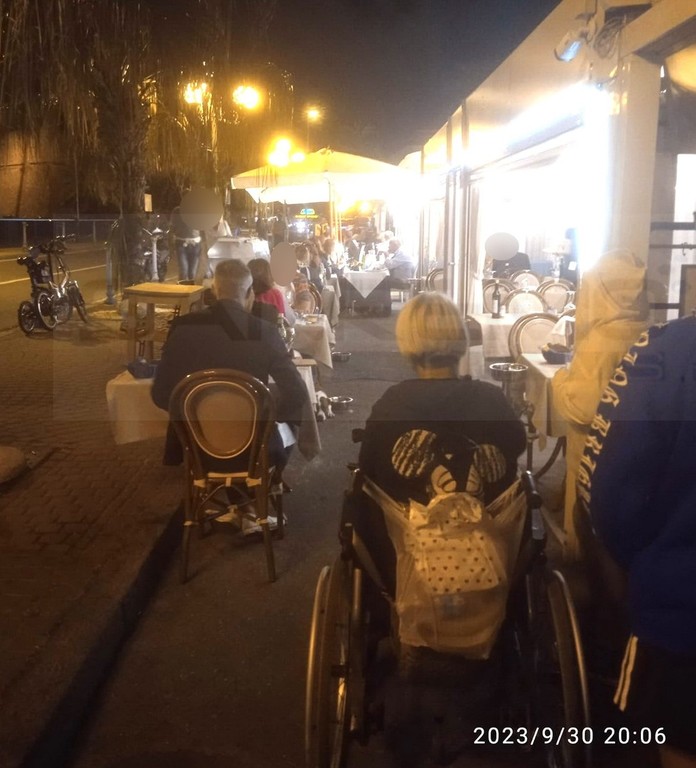Sanremo: dehors allargati bloccano al porto una donna in sedia a rotelle, la protesta di Marcella (Foto)