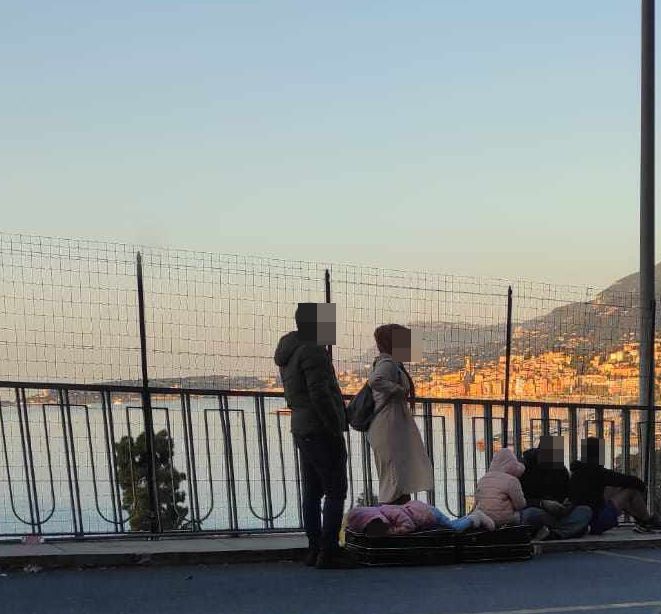 Una famiglia bloccata al confine tra Francia e Italia aspetta sul marciapiede mentre la loro bimba riposa sdraiata sulla valigia. È una delle tante scene toccanti che vedono come protagonisti i migranti, principalmente uomini ma anche famiglie e minori non accompagnati, che non riescono a passare la frontiera a causa dei controlli intensificati e dei respingimenti da parte dei francesi, sia a Ponte San Ludovico che a Ponte San Luigi. Controllate anche le entrate in Italia. Alla frontiera ‘bassa’, questa mattina, era presente un presidio della guardia di finanza, insieme alla squadra cinofila.