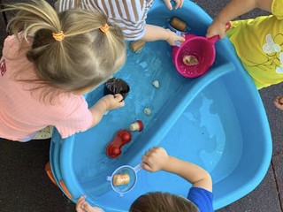 Il primo giorno: “a pesca” con Nonno Biagio che, dalla lontana Sicilia, ci mostrato una sua grande passione, dando la possibilità di poterlo emulare durante i travasi con l’acqua.