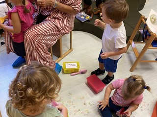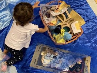 Il terzo giorno: “impariamo l’arte del cucito” con le nonne Rita e Tiziana e il supporto video di nonna Marzia. Insieme a loro i bimbi hanno esplorato tutte le diverse consistenze dei tessuti, manipolando stoffe di vario tipo e allenato la motricità fine attraverso l’arte della tessitura.