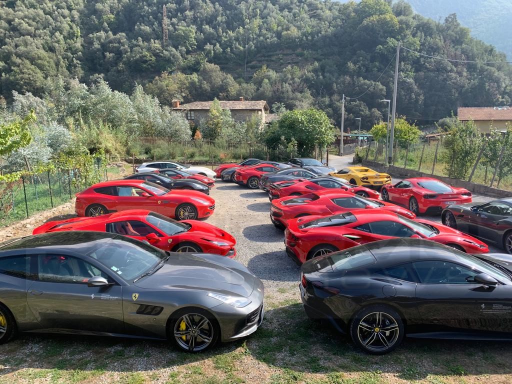 Una iniziativa organizzata dalla concessionaria Ferrari, Modena Sport, di Toulose in Francia che ha riunito numerosi proprietari transalpini, per raggiungere Maranello dove ha sede la casa madre del cavallino rampante. In questo viaggio, il gruppo, come era già accaduto nel 2018, ha fatto tappa alle Macine del Confluente di Badalucco.
