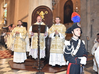 Sono iniziati oggi i festeggiamenti del Santo Patrono di Sanremo, San Romolo, che culmineranno nelle premiazioni di oggi pomeriggio al Teatro dell'Opera del Casinò, assegnate dalla Famija Sanremasca, con i premi San Romolo 2023 e l’onorificenza di cittadino benemerito. Alla concattedrale di San Siro è stata celebrata la Santa Messa, dal Vescovo, Mons. Antonio Suetta, alla presenza delle massime autorità cittadine e provinciali.