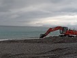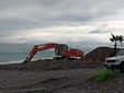 Diverse ruspe stanno scavando e creando dei 'muri' con i materiali della spiaggia per difendere dalle onde le varie strutture turistiche poste sul lungomare.