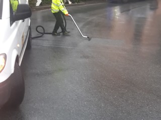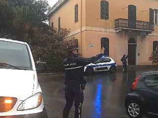 Sanremo: mix di vernice e pioggia rendono la strada pericolosa, intervento della Polizia Locale