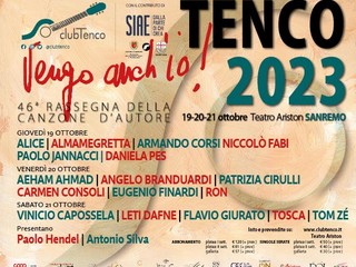 Al grido di “Vengo anch’io!”, in omaggio all’indimenticabile Enzo Jannacci, prende il via oggi il Premio Tenzo, la 46ª Rassegna della Canzone d’Autore in programma dal 19 al 21 ottobre al Teatro Ariston di Sanremo. Questa sera sul palco saliranno: Alice (Targa Tenco come miglior Interprete di Canzoni con “Eri con me”), Almamegretta (Targa Tenco come miglior Album in Dialetto con “Senghe”), Armando Corsi, Niccolò Fabi (Targa Tenco come Miglior Canzone con “Andare oltre”), Paolo Jannacci (premio Siae) e Daniela Pes (Targa Tenco come miglior Opera Prima). Lo storico presentatore della rassegna Antonio Silva sarà affiancato per questa edizione dall’attore Paolo Hendel.