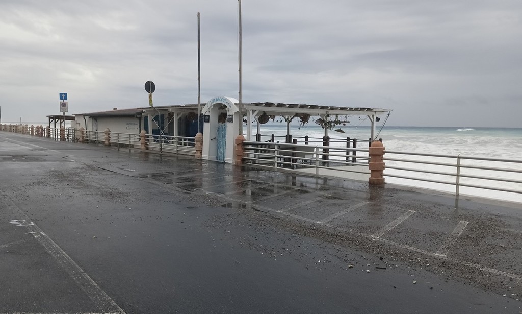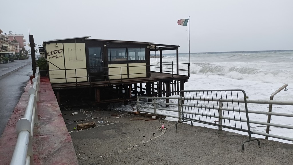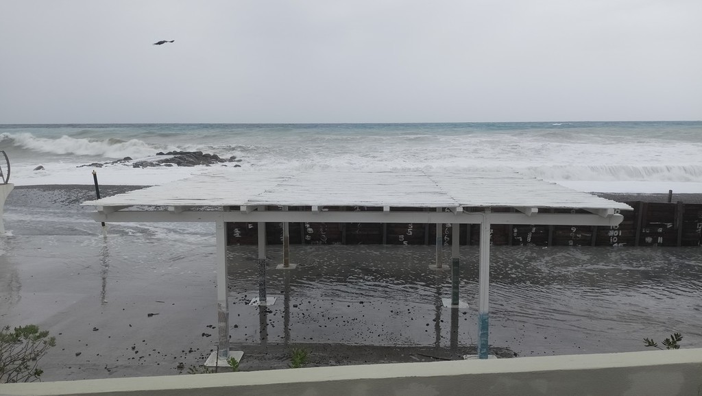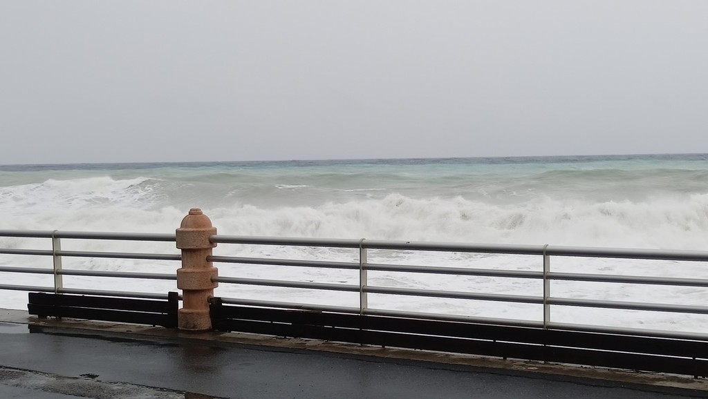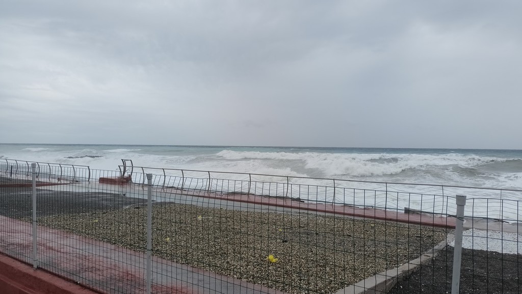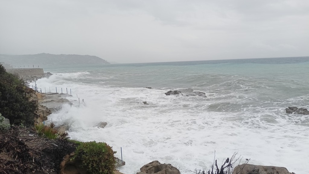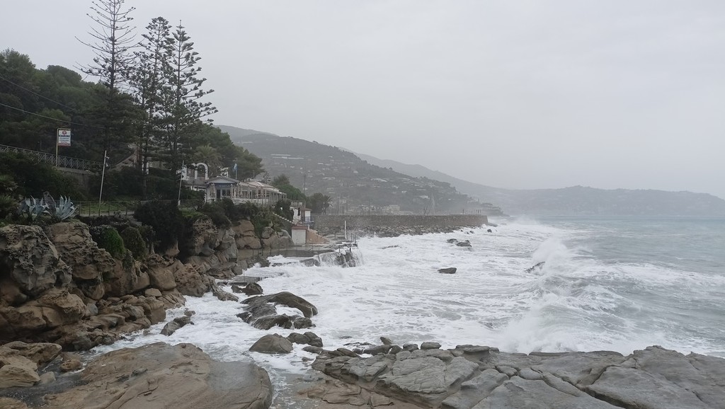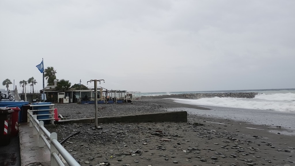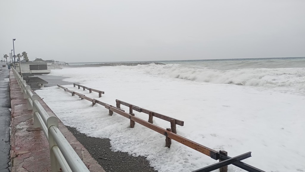 Mareggiata a Bordighera, le onde raggiungono la passeggiata e gli stabilimenti balneari (Foto e video)