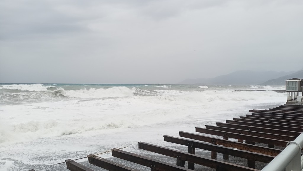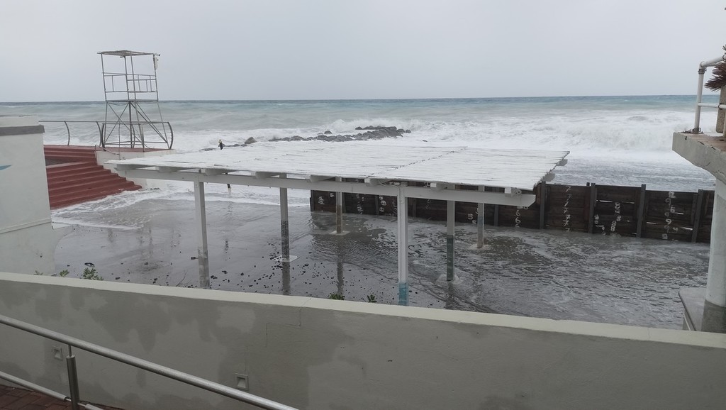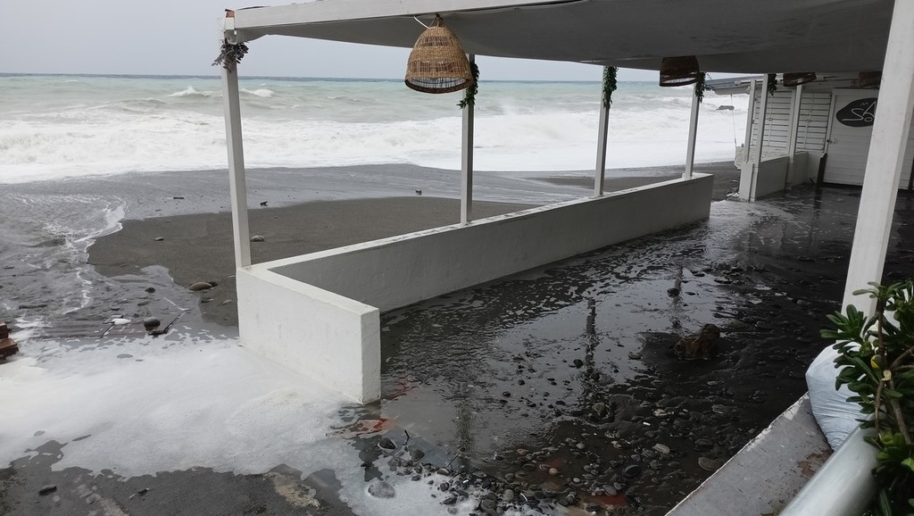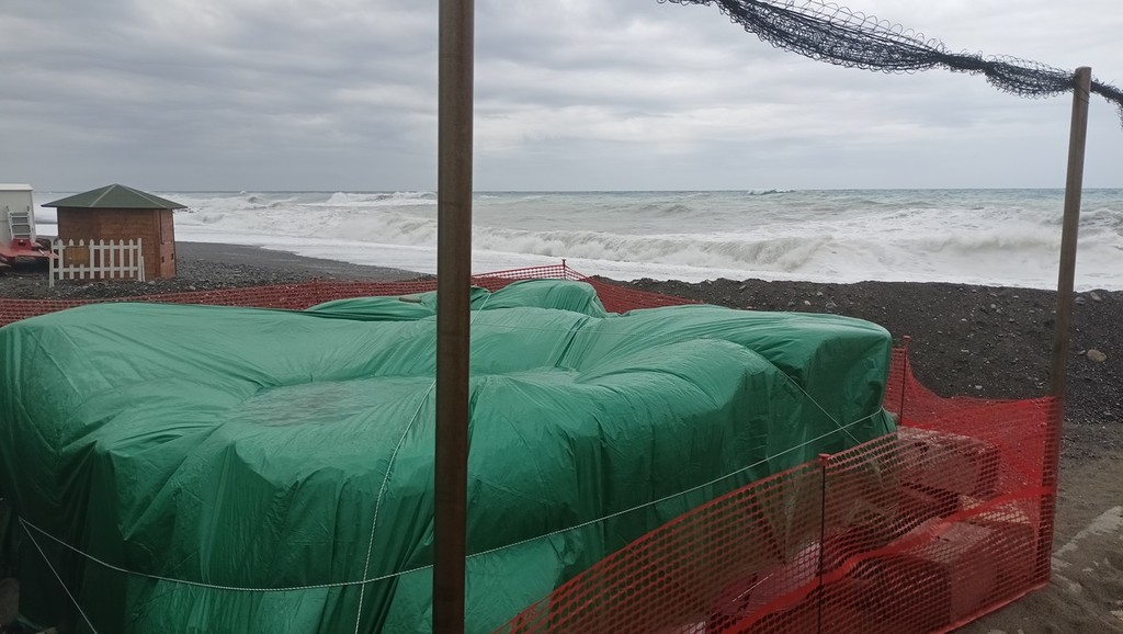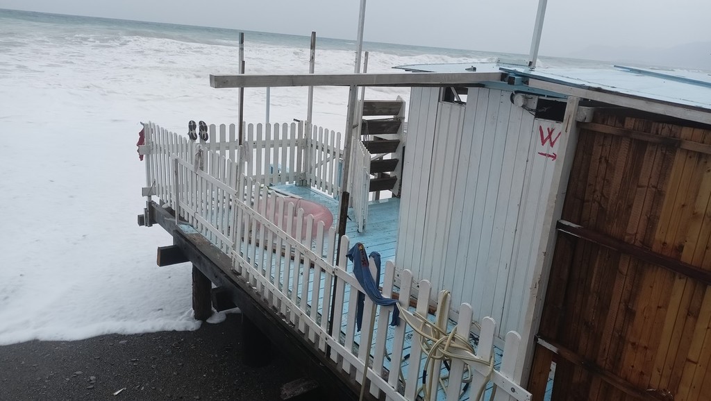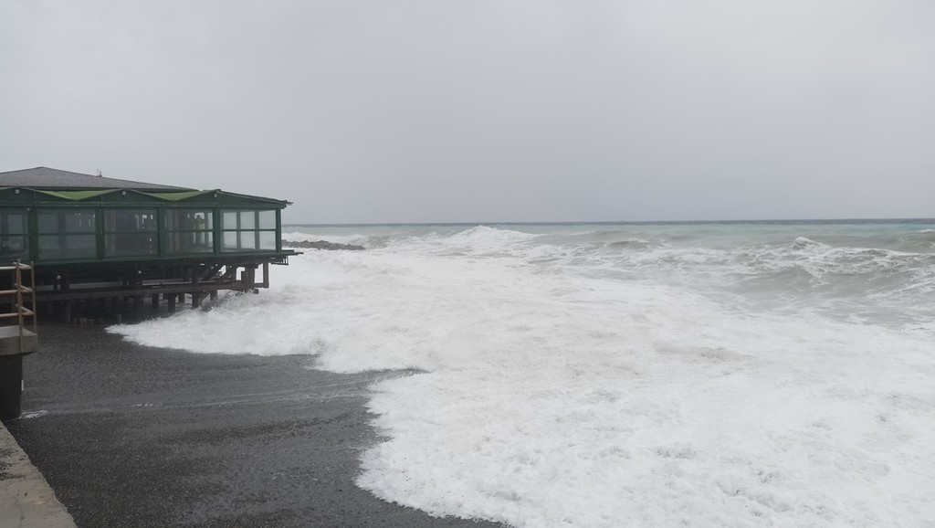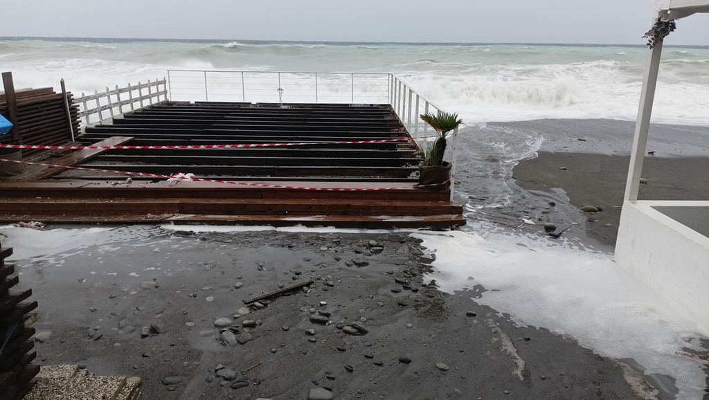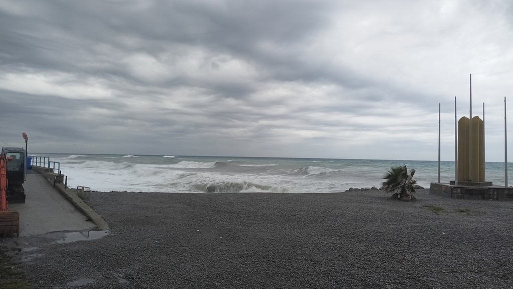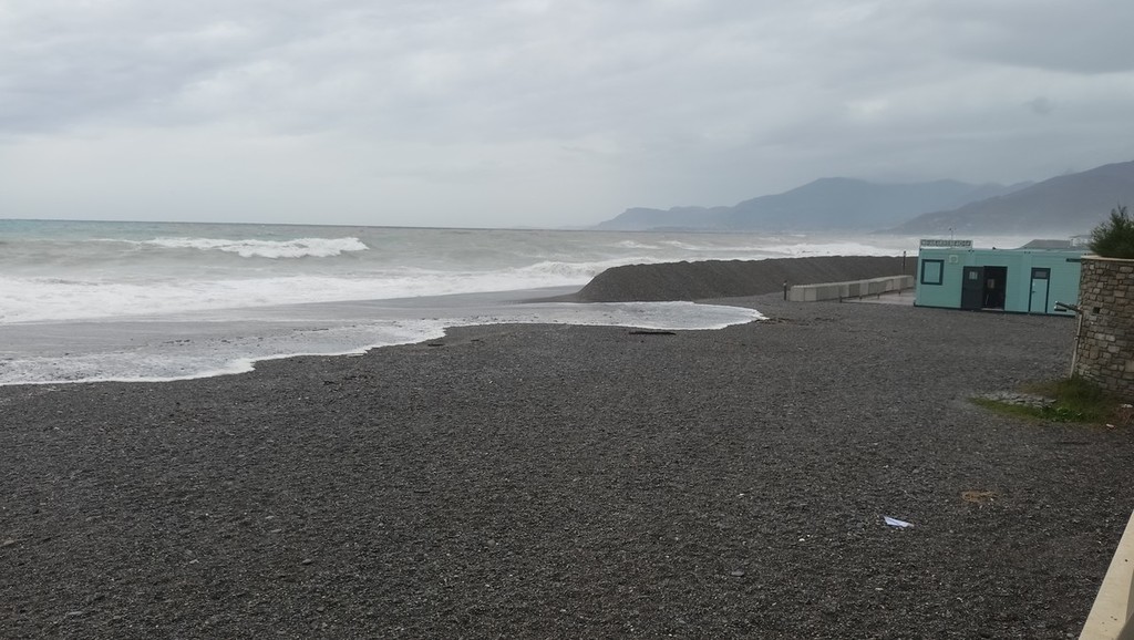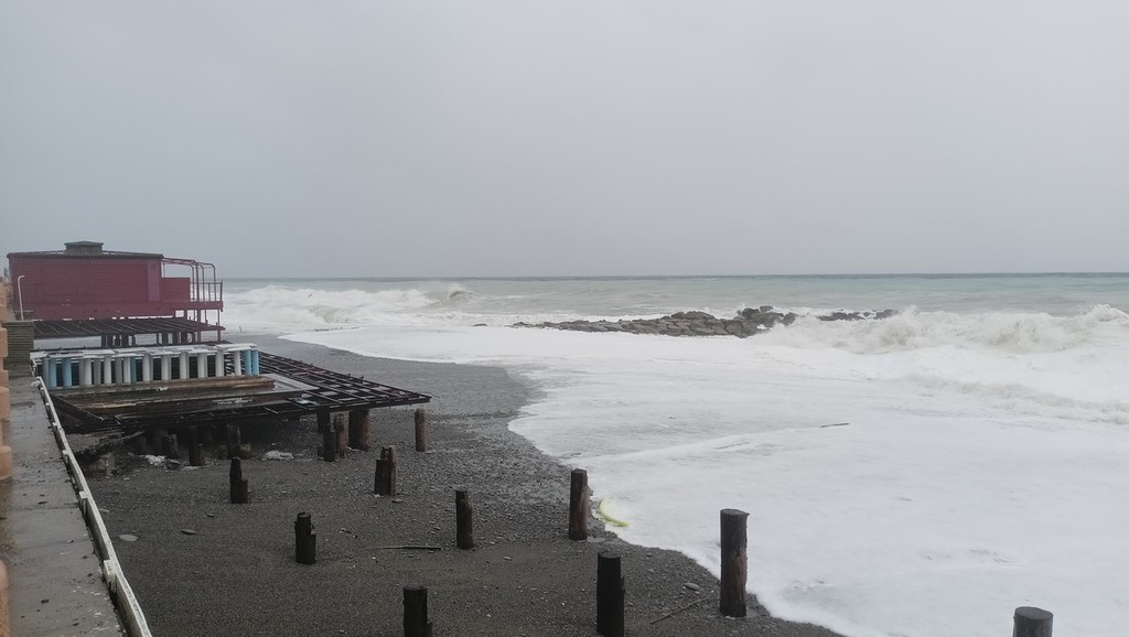 Mareggiata a Bordighera, le onde raggiungono la passeggiata e gli stabilimenti balneari (Foto e video)