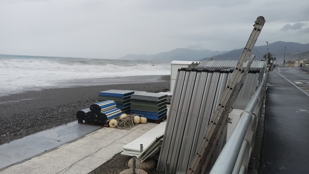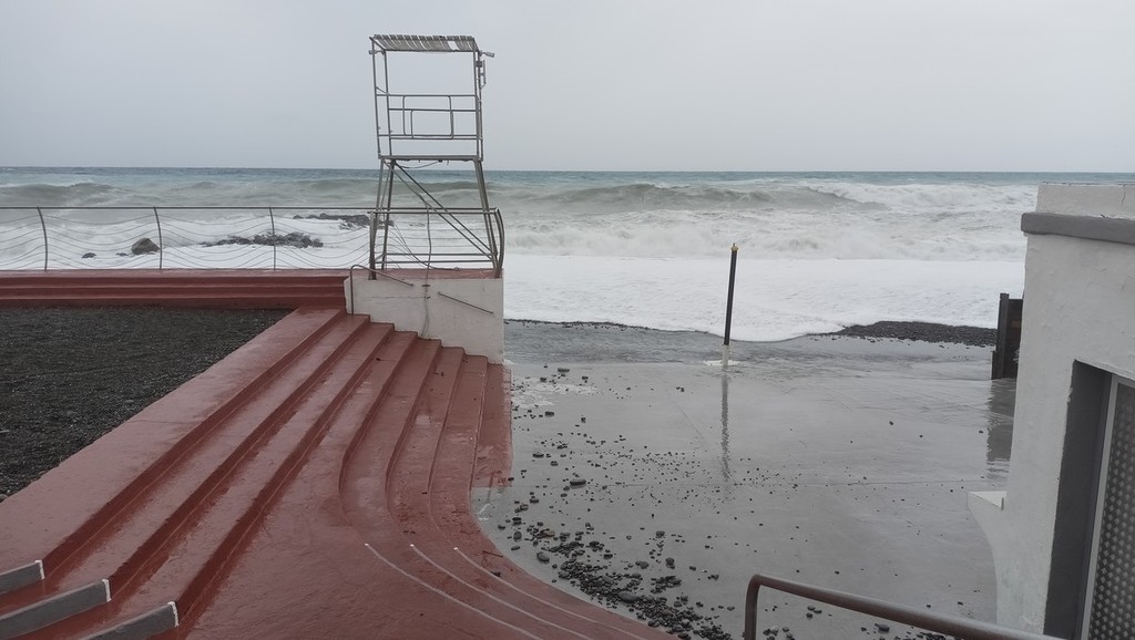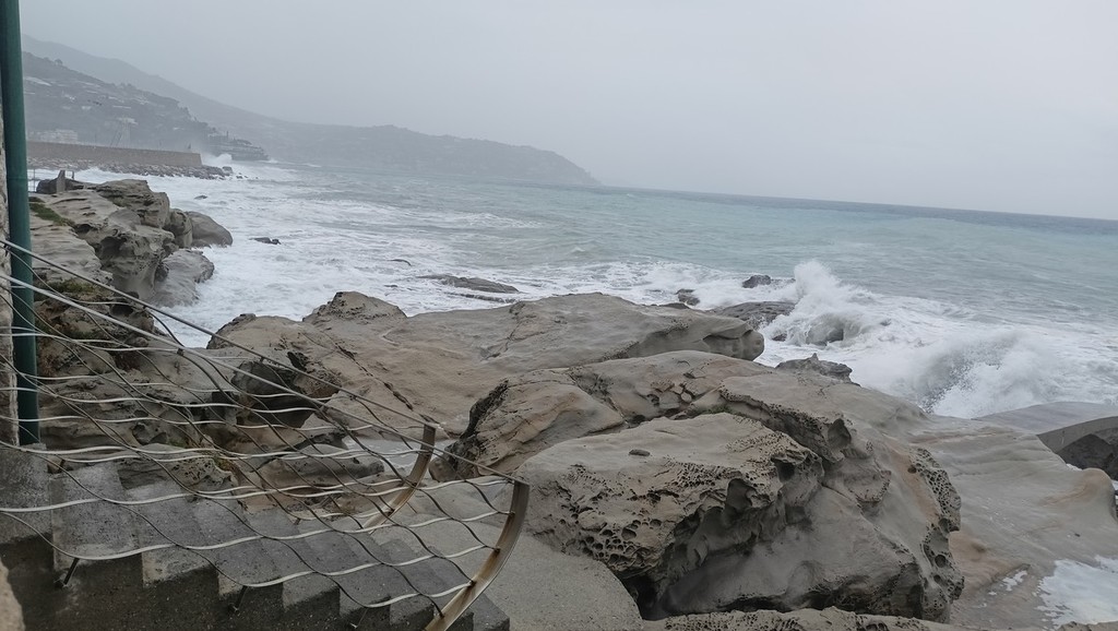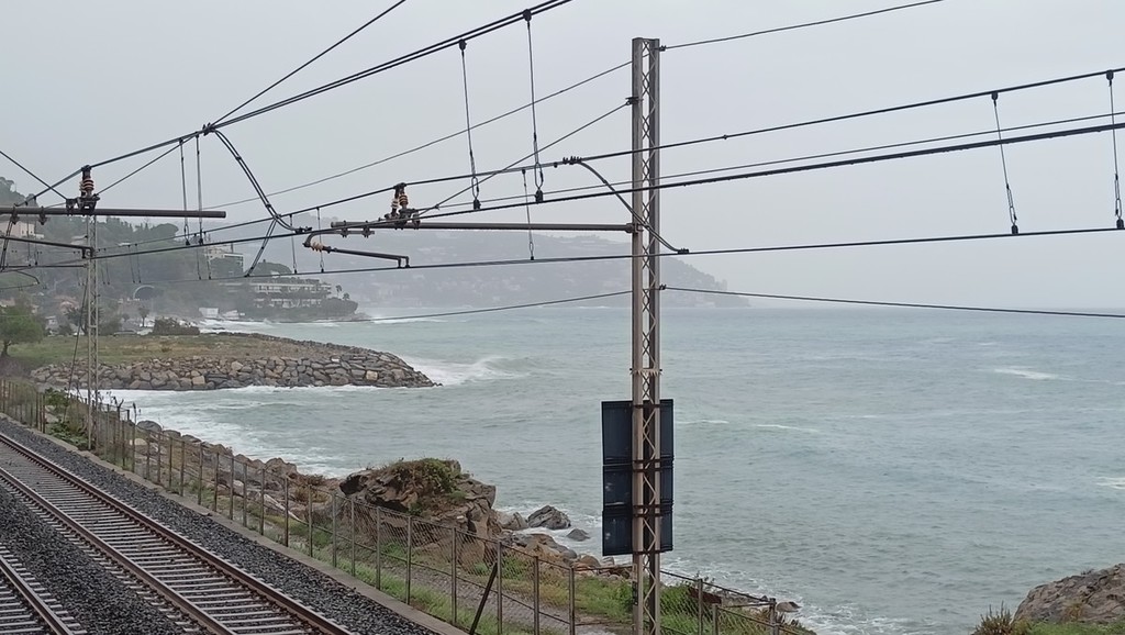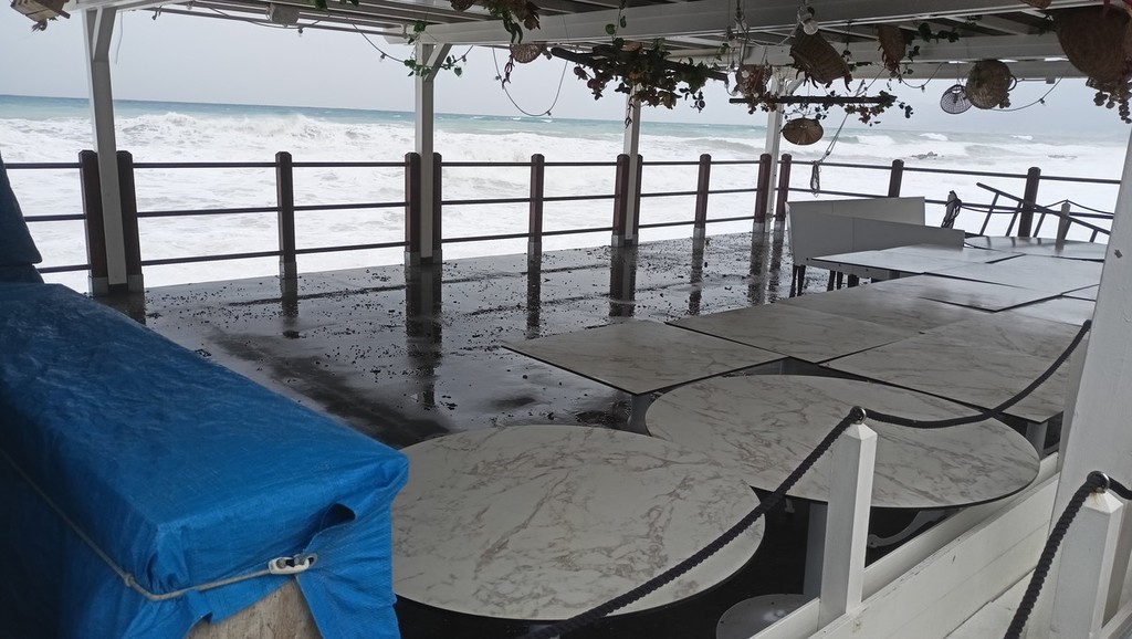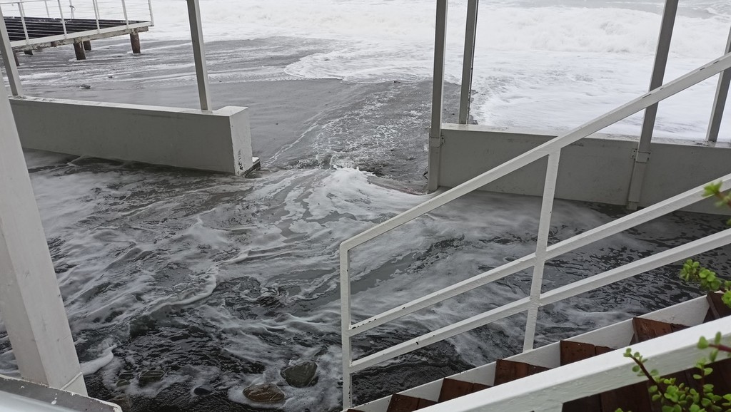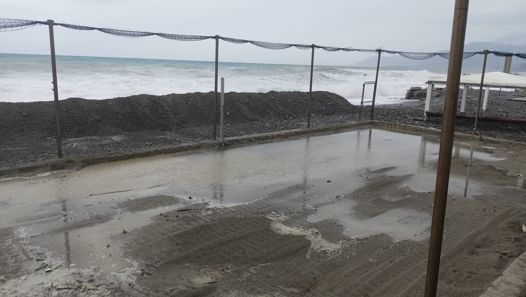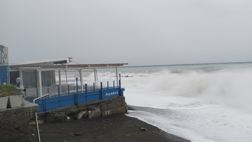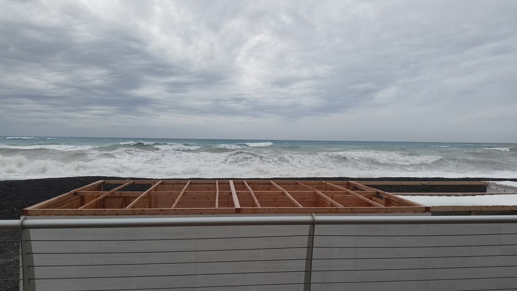 Mareggiata a Bordighera, le onde raggiungono la passeggiata e gli stabilimenti balneari (Foto e video)