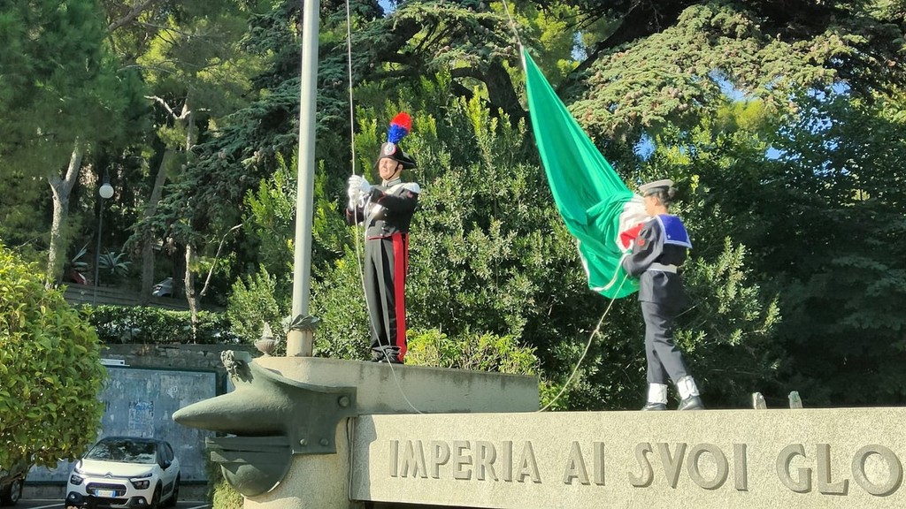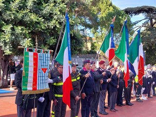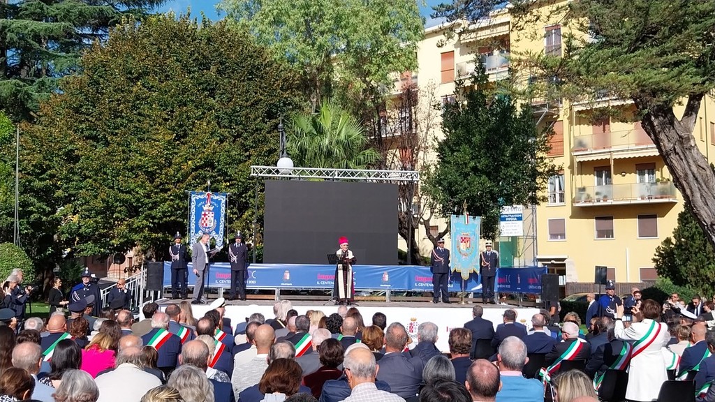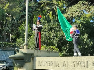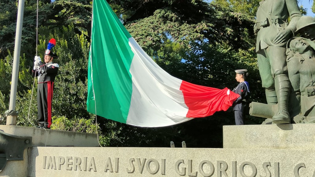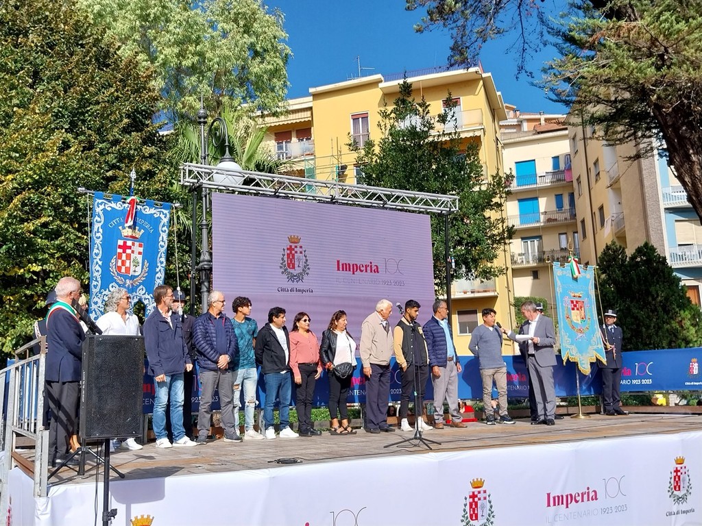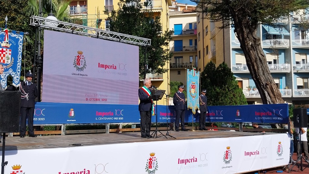 Cerimonia del Centenario della città stamattina in piazza della Vittoria a Imperia per ricordare il 21 ottobre 1923, quando vennero uniti per Regio decreto oltre a Oneglia e Porto Maurizio altri 9 comuni dando vita, appunto, a Imperia.