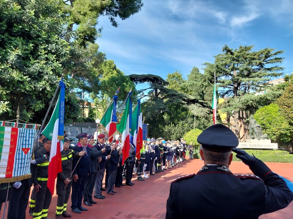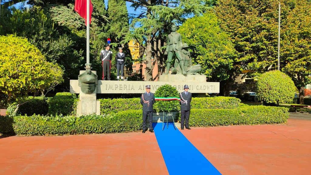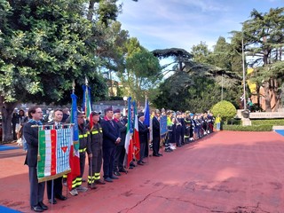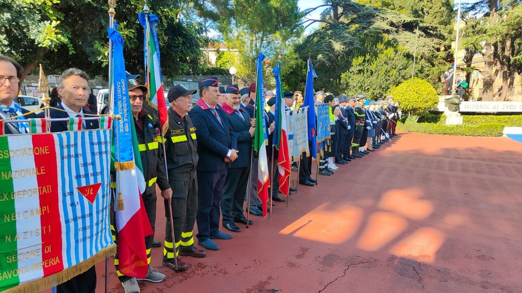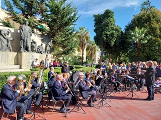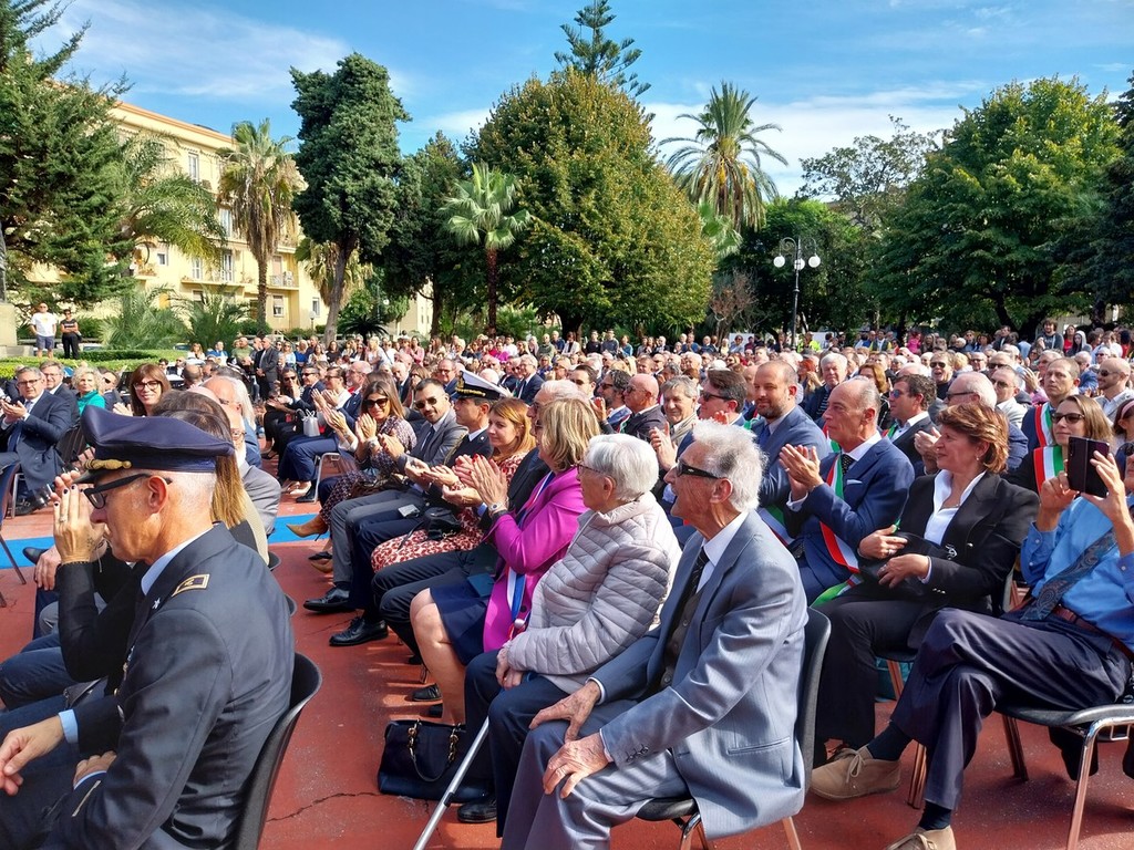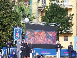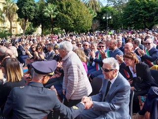 Cerimonia del Centenario della città stamattina in piazza della Vittoria a Imperia per ricordare il 21 ottobre 1923, quando vennero uniti per Regio decreto oltre a Oneglia e Porto Maurizio altri 9 comuni dando vita, appunto, a Imperia.