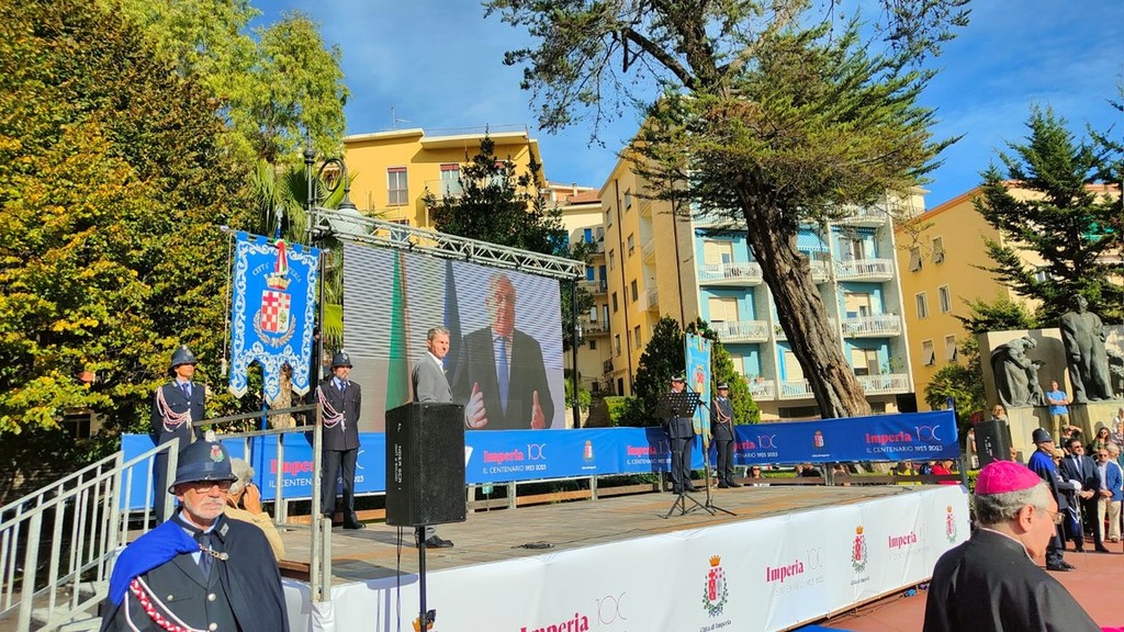 Ha aggiunto Claudio Scajola: "Ci arride anche il clima e la giornata, d’altra parte Imperia ha il miglio clima d’Italia. È una giornata importante, cento anni sono importanti, perché è una storia importante quella di Imperia. Non è una città nuova, ha duemila anni, ma ha avuto la lungimiranza di capire che insieme si cresce. È una ricorrenza storica importante e colgo con piacere che è stata riconosciuta questa importanza dal governo centrale, dalla Regione, dai cittadini della nostra città, dai sindaci che sono presenti. È una buona occasione per dare ottimismo alle nuove generazioni.