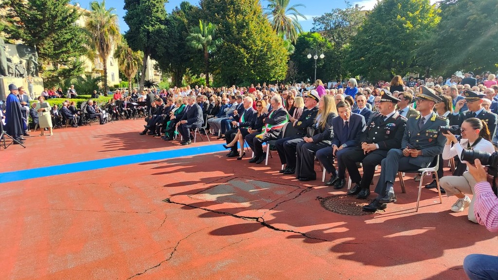 A guidare il nutrito parterre di autorità il sindaco Claudio Scajola accompagnato dalla moglie Maria Teresa Verda. Presenti, tra gli altri, il sindaco di Genova Marco Bucci, mentre ha portato il suo saluto tramite un video il ministro degli esteri Antonio Tajani.