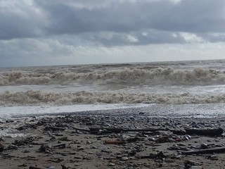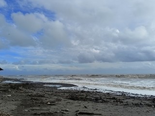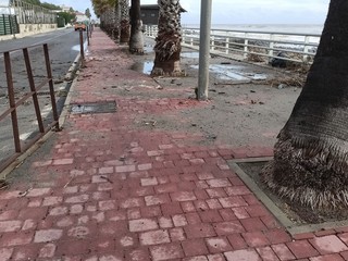 Tronchi di legno, canne, pietre, sabbia e rifiuti sono stati portati dalla mareggiata di ieri, fino alla strada e alla ciclopedonale a Camporosso mare.