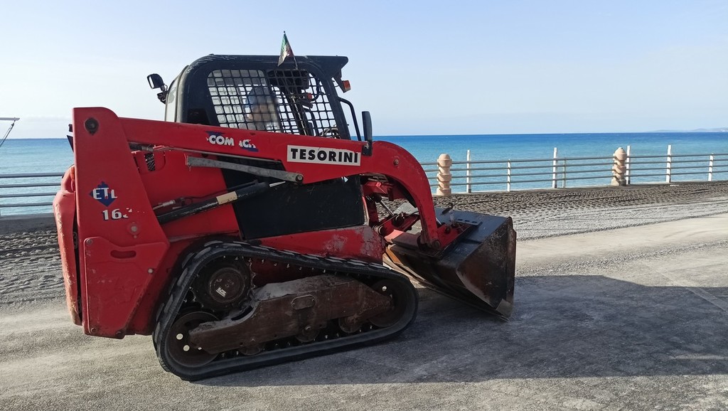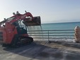 Ruspa al lavoro per sgombrare il fronte mare da sabbia e pietre
