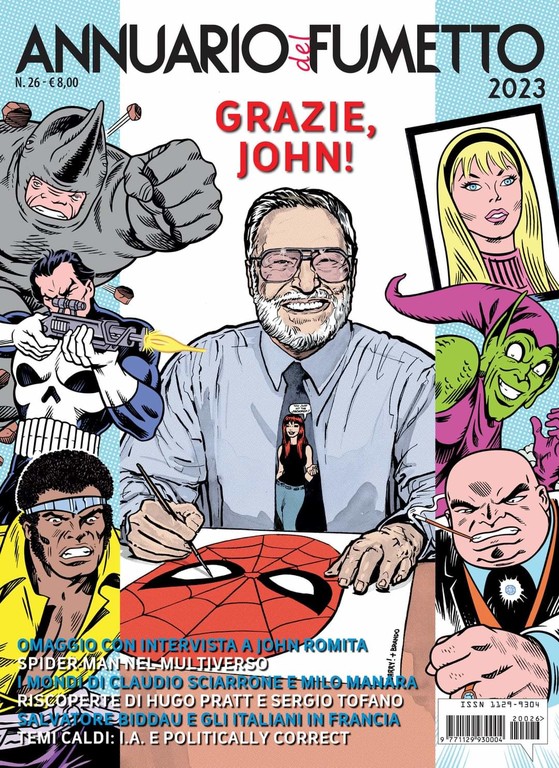 Il soggetto protagonista della cover è John Romita Senior, fumettista statunitense, famoso per aver portato all'apice del successo la serie “The Amazing Spider-Man”, scomparso il 12 giugno e vero e proprio mito della casa editrice Marvel Comics.