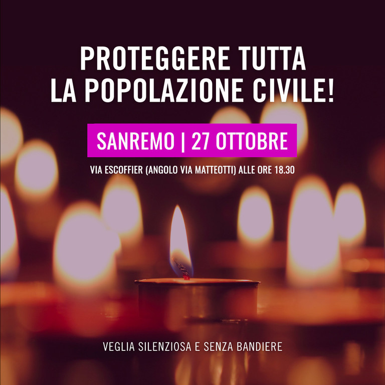 Venerdì 27 ottobre alle 18.30 in Via Escoffier (angolo Via Matteotti) Amnesty International organizza una veglia silenziosa per chiedere la protezione di tutta la popolazione civile