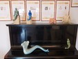 In contemporanea si terrà anche l’esposizione delle opere di Serenella Sossi, la “Mostra per il Centenario”, spiega l’artista: “Si tratta di un’antologica in quanto ci sono opere anche di trent’anni fa tutte con tematica Imperia, il suo entroterra e la provincia: ci sono esposti delfini in omaggio al parco dei cetacei, le vele e non può mancare la serie delle sirene, tra cui quelle in forma ridotta della sirena realizzata da me due anni fa e installata sul molo di Oneglia”.