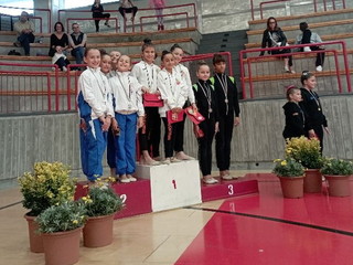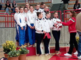 Tre le squadre scese in pedana, con risultati che hanno soddisfatto i tecnici della sezione presenti in campo gara, Monia Stabile, Alice e Lorenza Frascarelli e Vittoria Arieta. Primo podio di giornata ottenuto nel livello LE (il più alto nel silver), con un argento ottenuto da Esmeralda Caporusso, Giada Caridi, Giulia Carrera, Alessia Cirone e Marie Panizzi. Altro argento nell’LA allieve dove le nostre ‘giovanissime’ Beatrice Di Bernardo, Camilla Rodi, Benedetta Semiglia e Beatrice Solonari, seppure alle loro prime esperienze di gara, hanno ben figurato Nella gara LC open 6° posto per Isabella Amelio, Micol Colucci, Laura Garibaldi, Alice Iaria, e Giorgia Trosso. I punteggi ottenuti sono incoraggianti per le prossime gare individuali in programma a novembre e le finali nazionali di Rimini dal 7 al 10 dicembre.