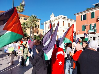 Un centinaio di persone hanno partecipato alla manifestazione e al corteo organizzati dalla comunità islamica imperiese in solidarietà al popolo palestinese e contro i bombardamenti israeliani sulla Striscia di Gaza, ripresi dopo l’attacco di Hamas dello scorso 7 ottobre.