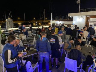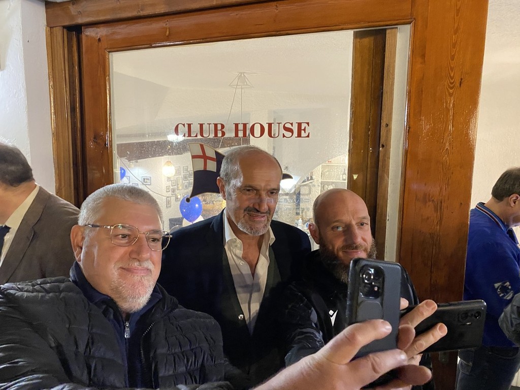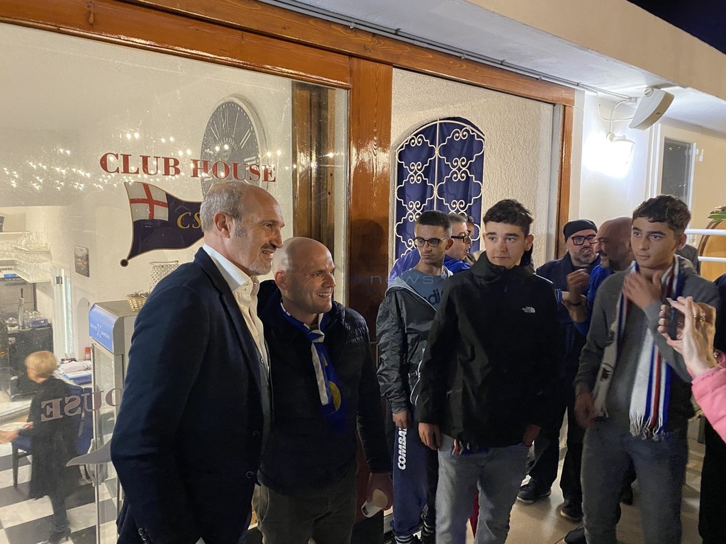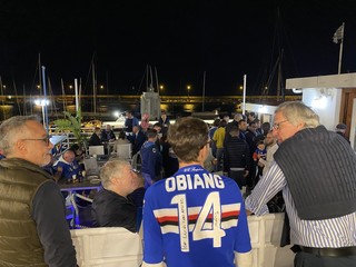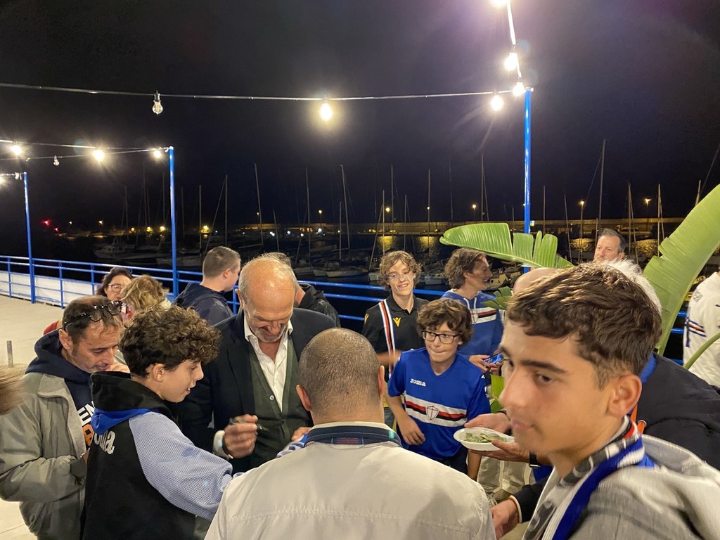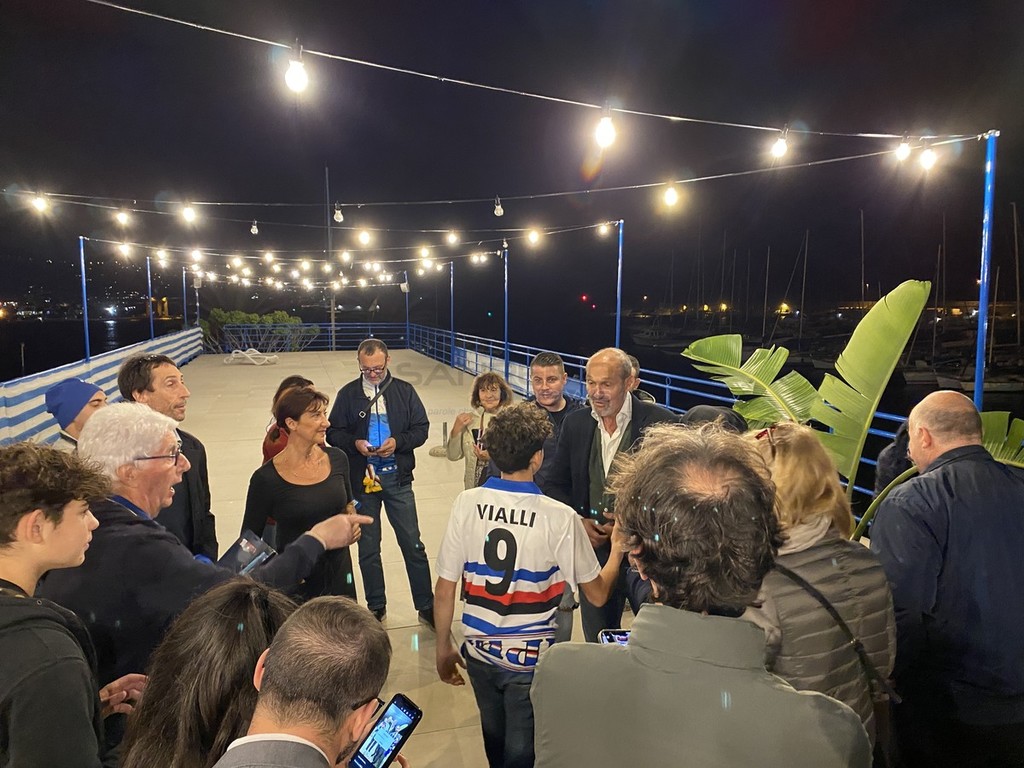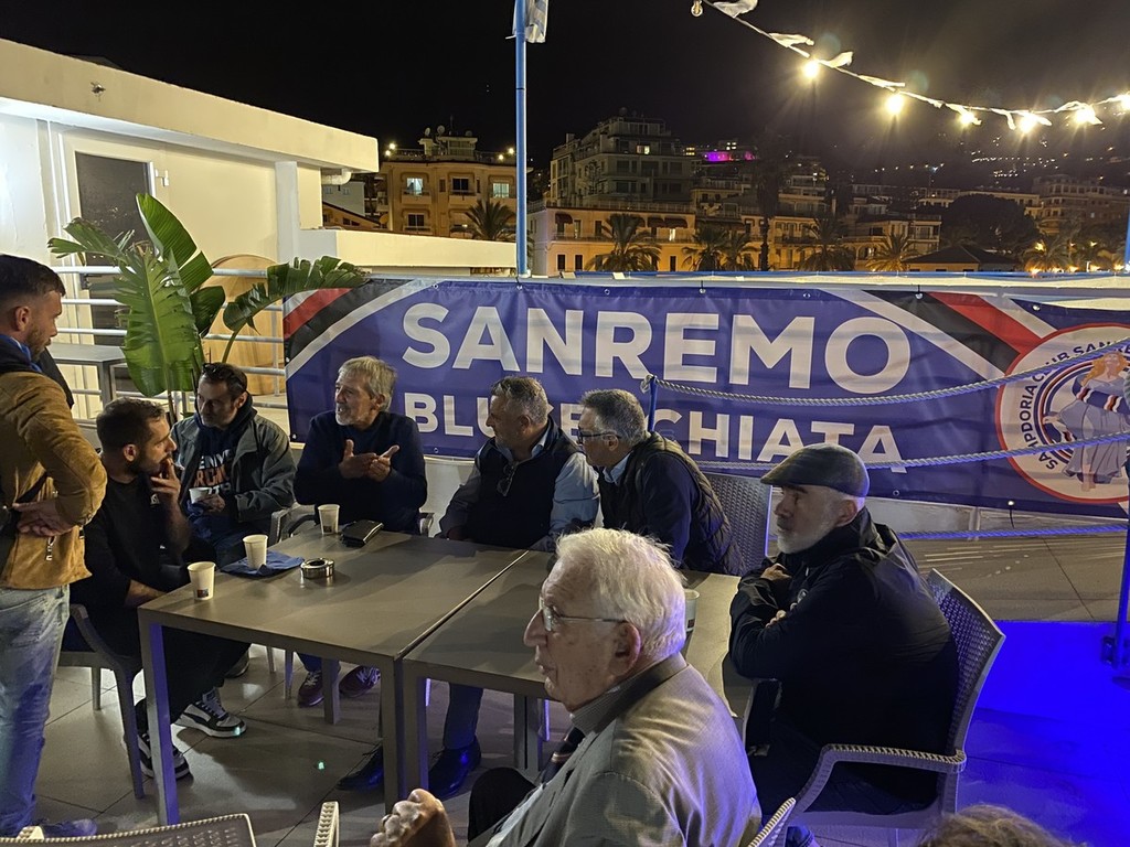 “Sampdoria, la pioggia non ci bagna quando giochi tu” recita uno dei cori più noti in gradinata Sud. E così è stato anche ieri sera alla Canottieri Sanremo dove in una piovosa serata di fine ottobre ha fatto il suo debutto ufficiale il Sampdoria Club ‘Sanremo Blucerchiata’. Un appuntamento storico impreziosito dalla presenza del presidente Marco Lanna che ha rappresentato la società alla prima uscita ufficiale del Club matuziano nato per iniziativa di Federico Crespi e di tanti appassionati della zona, oltre a Enrico Vella, ex calciatore della Sanremese e, non a caso, della Sampdoria.