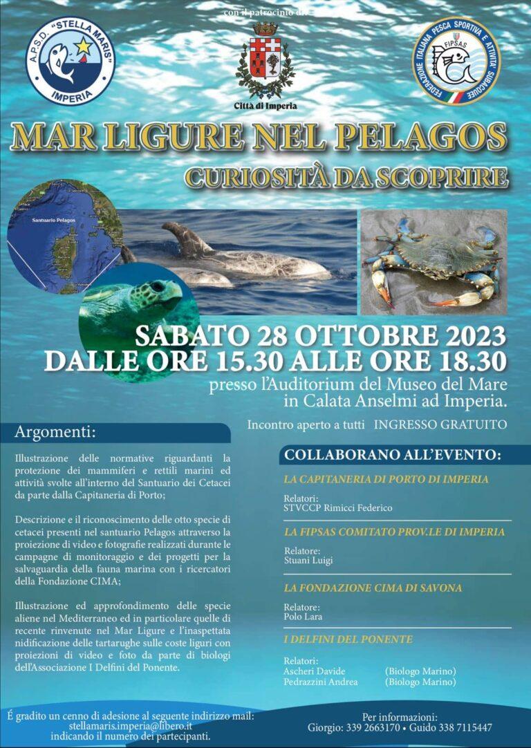 15.30-18.30. ‘Mar Ligure nel Pelagos – curiosità da scoprire’: incontro aperto al pubblico con la partecipazione di numerosi relatori. Evento a cura dell’associazione Stella Maris di Imperia. Auditorium del Museo del Mare in Calata Anselmi (locandina)