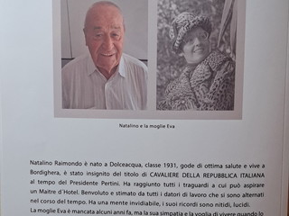 "Il libro ripercorre - si spiega nel comunicato - la vita professionale di Natalino Raimondo classe 1931 nato a Dolceacqua, sviluppatasi nell’hotellerie di alto livello. Nel 1948 lo troviamo già alla prima esperienza lavorativa presso l’Hotel Bristol a Bordighera, passano pochi anni e nel ’50 allontanandosi per la prima volta dalla Riviera , trascorre qualche anno presso il Grand Hotel Miramonti di Saint Vincent. Ritorna in Riviera a Ventimiglia nel Ristorante La Mortola, della Famiglia Lorenzi, all’epoca era il Ristorante frequentato dal jet set che gravitava su Monaco e Cannes e dove incontra personaggi famosi come: l’Aga Khan IV, il Re Faruk d’Egitto, il grande Fausto Coppi e tanti altri. Altra esperienza lo porta al Grand Hotel Principe di Piemonte di Viareggio dove ha conosciuto il mitico Manuel Fangio dominatore delle gare automobilistiche dell’epoca.