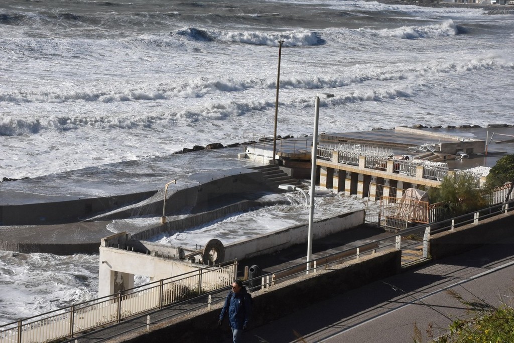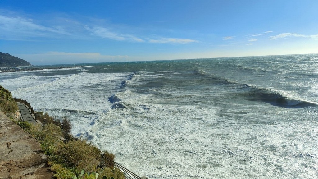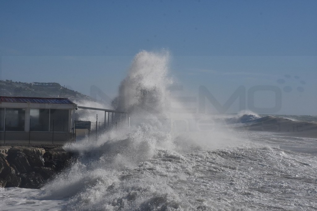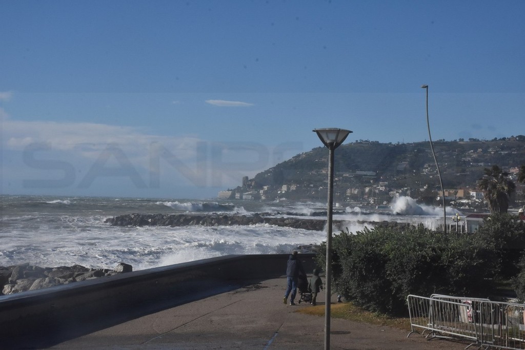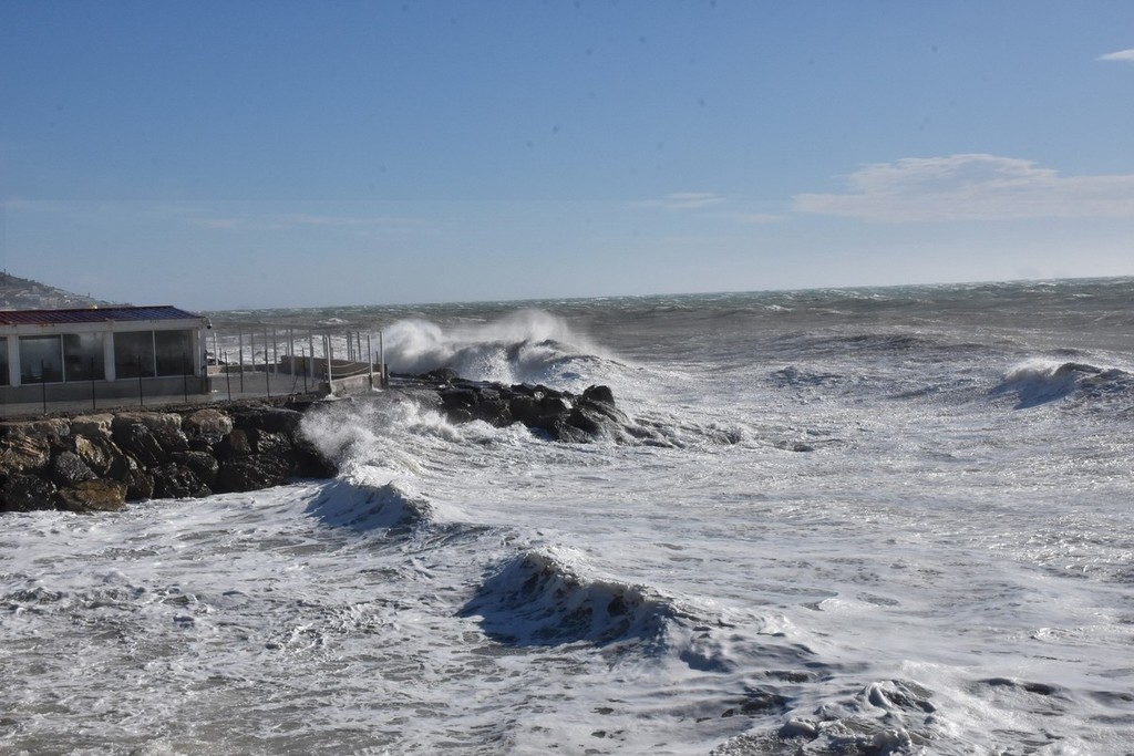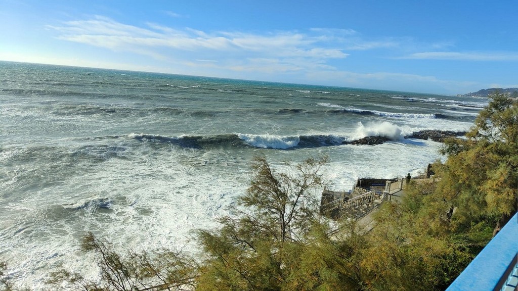Vento forte e mareggiata su tutta la costa: raffica da 98 km/h a Ventimiglia, per ora pochi danni (Foto e video)