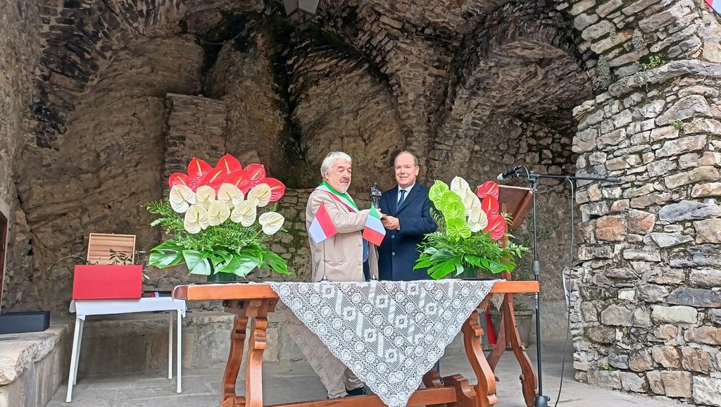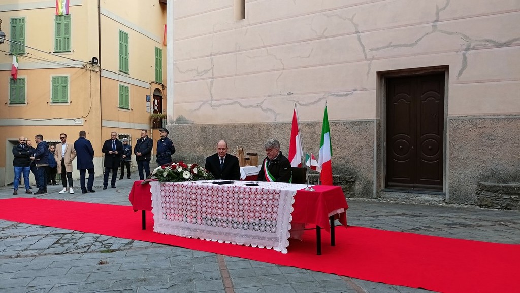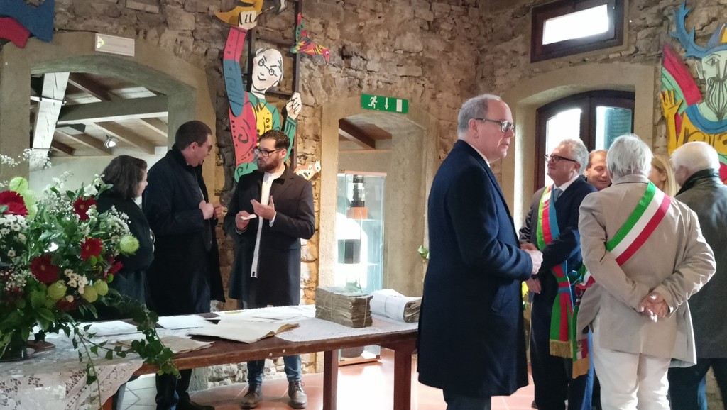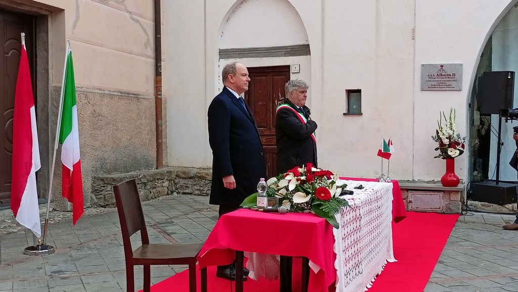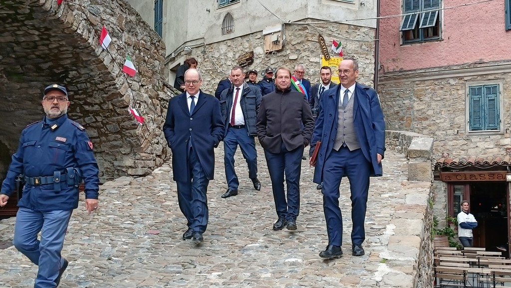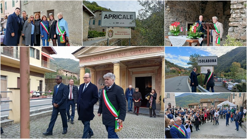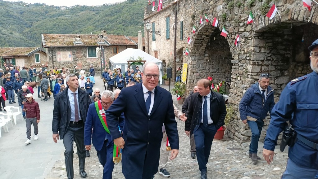 Dopo la giornata di ieri a Dolceacqua per il gemellaggio con il Principato di Monaco, il principe ha fatto tappa a Isolabona e Apricale che, insieme a Perinaldo, il 3 novembre del 1523 firmarono la "Carta di Fedeltà alla famiglia Grimaldi". E' stato accolto dai sindaci dei due borghi, dai primi cittadini delle città limitrofe, dal consigliere regionale Mabel Riolfo, dai cittadini e dalle autorità militari.