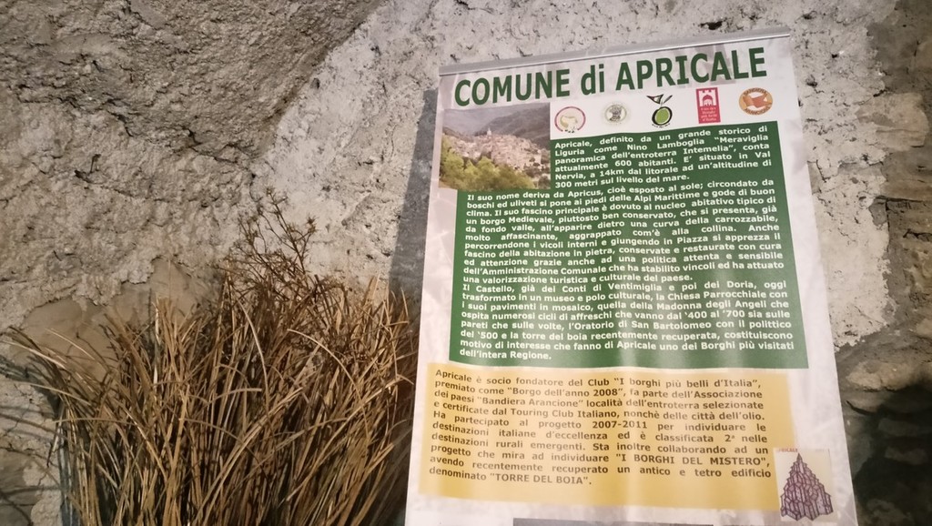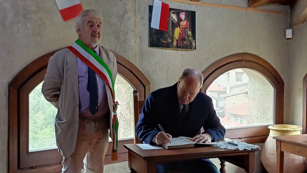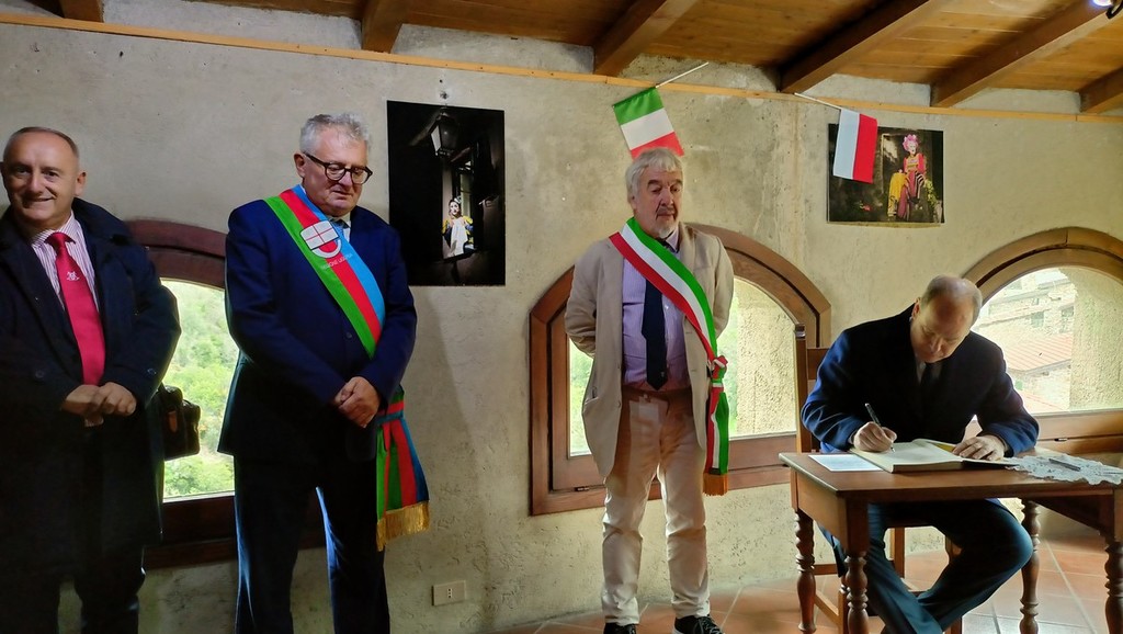 Ad Apricale vi era anche l'assessore regionale Augusto Sartori che ha portato i saluti della giunta regionale a sua altezza serenissima il Principe Alberto II di Monaco in occasione dell'inaugurazione di una targa di appartenenza all'Associazione Siti Storici Grimaldi. “Un grande onore oggi rappresentare Regione Liguria in questa significativa cerimonia. Il 3 novembre 1523, i quattro Comuni di Dolceacqua, Isolabona, Apricale e Perinaldo firmarono la 'Carta di Fedeltà alla famiglia Grimaldi'. Oggi il Principe ha visitato il castello a ricordo dell'evento e gli stand dei prodotti tipici delle località grazie alla contemporanea inaugurazione dell'Expo Val Nervia. Ringrazio in particolare i sindaci Silvano Pisano e Fulvio Gazzola per avermi invitato a trascorrere questa meravigliosa giornata nei loro splendidi borghi, piccoli gioielli dalla grande bellezza della Riviera Ligure”, ha commentato Sartori.