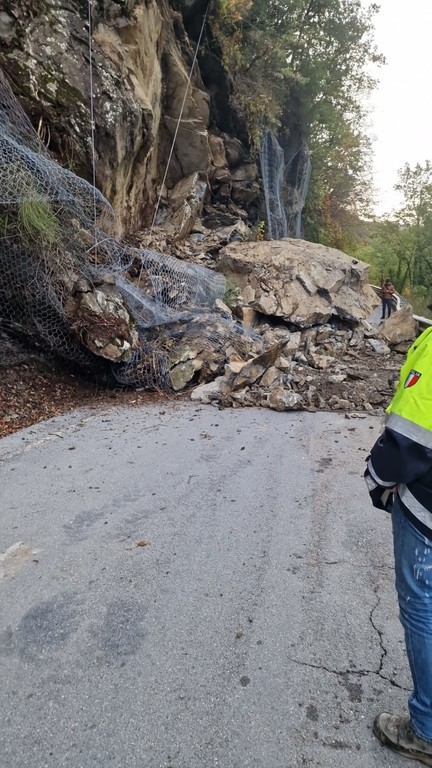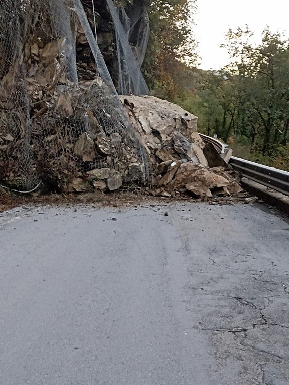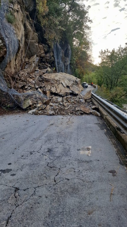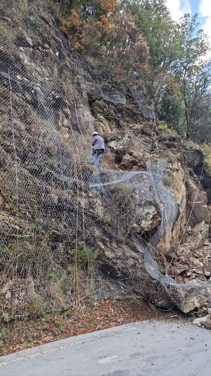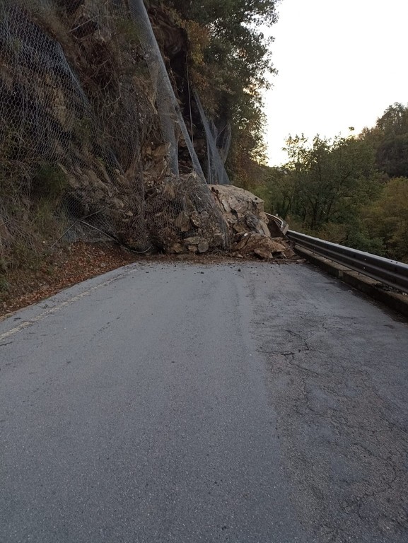 Frana tra Agaggio e Molini di Triora: riapre la SP548 con guardiano, l'intera parete è a rischio