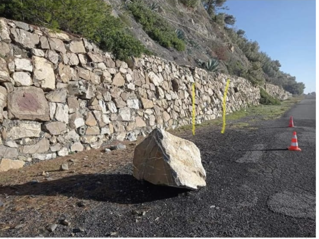Ieri il provvedimento di chiusura deciso dal Comune, oggi la caduta di un grosso masso nei pressi della Galezza tra Imperia e Diano Marina.