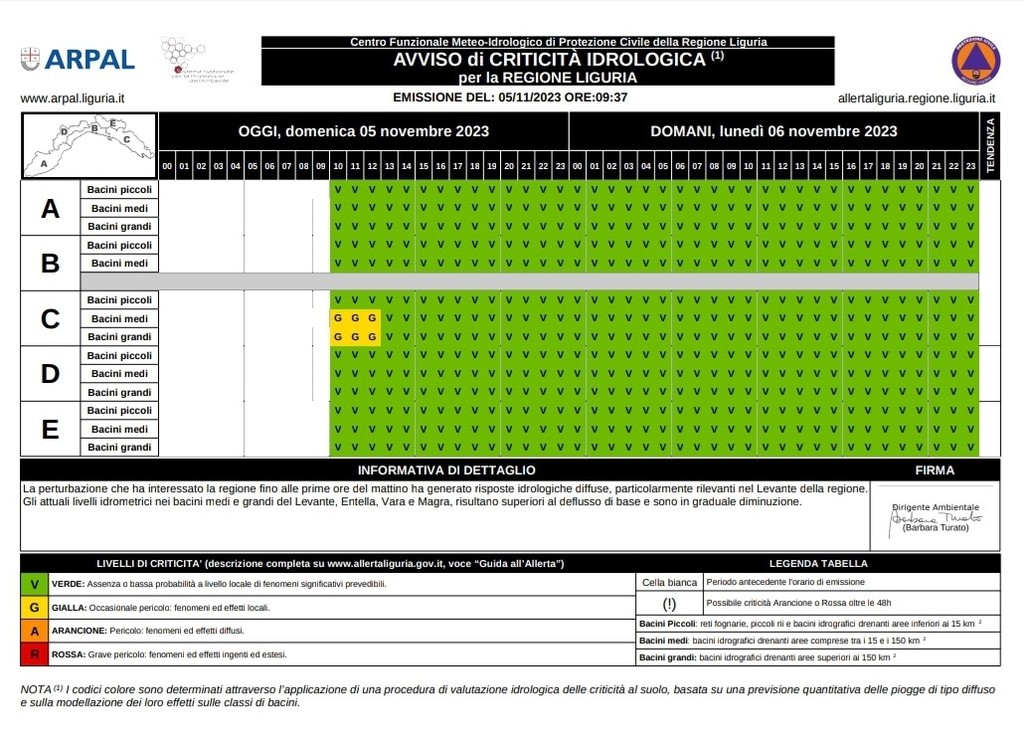 Maltempo: Arpal conferma chiusura allerta gialla sulla riviera di levante della Regione