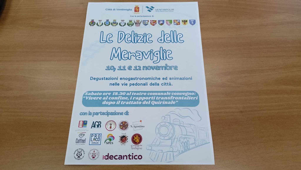 Il comune di Ventimiglia ha aderito all'avviso pubblico regionale a valere sulle risorse F.U.N.T. del Ministero del Turismo dando così vita alla prima edizione della manifestazione che ha l'obiettivo di ridare un ruolo centrale a Ventimiglia nel comprensorio della val Roya. “Abbiamo deciso di aderire ad un bando nazionale per una nuova manifestazione denominata 'Delizie delle Meraviglie' in quanto è certamente di carattere culturale ed enogastronomico, ma che vuole ridare un ruolo centrale a Ventimiglia nel comprensorio della Val Roya. Un evento dal costo di 50mila euro, metà è un contributo del Ministero. Con la cifra ottenuta abbiamo comprato un gazebo, panche e tavoli con il nuovo logo di Ventimiglia. Nuovi materiali che potranno essere utilizzati per nuove iniziative in questi anni" - spiega il sindaco di Ventimiglia Flavio Di Muro - “Ventimiglia si candida come capitale della val Roya con l'interconnessione umana e logistica di viabilità e trasporti sulla dorsale della val Roya e della valle delle Meraviglie. Sarà un’occasione di sinergia tra enti a livello transfrontaliero, una vetrina congiunta di carattere turistico ma anche un'occasione per discutere di problemi contingenti, come quelli infrastrutturali ed opportunità di sviluppo per i nostri territori. Siamo andati di corsa ad organizzarla perché la manifestazione si sorregge su contributi extra comunali che ci sono giunti da poco. Ringrazio anche le associazioni per il loro contributo, che negli anni hanno mostrato sempre una particolare attenzione alle iniziative a carattere transfrontaliero. Sabato, inoltre, vi sarà un convegno che vuole analizzare quanto avvenuto nella recente riunione a Torino tra Italia e Francia, soprattutto le ricadute su questi territori”.