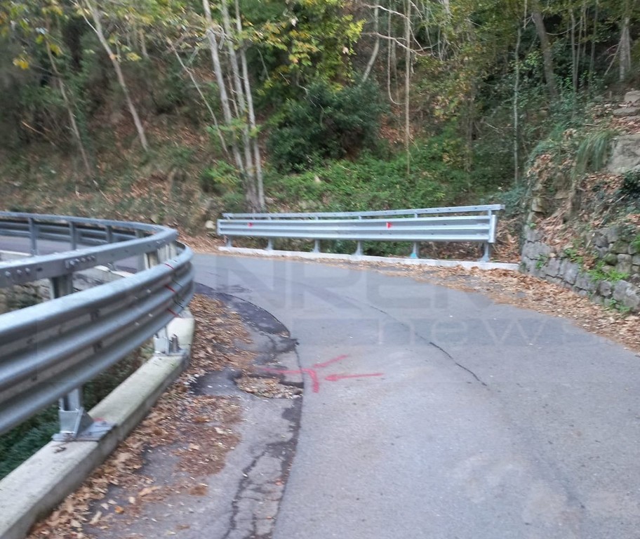 Buca pericolosa nel tratto a valle di strada Senatore Ernesto Marsaglia, nella zona della ‘Madonnina’.