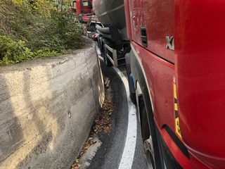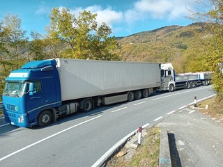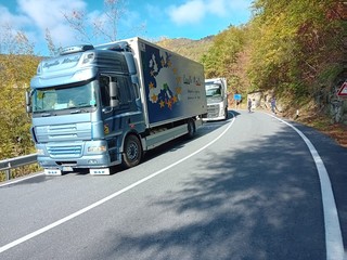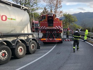 Pornassio, tir bloccato fra i tornanti della 28: servono i vigili del fuoco per liberare la strada (foto)