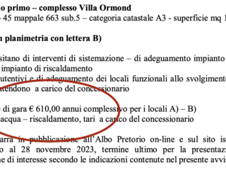 A poche ore dalla pubblicazione, gli uffici del Comune di Sanremo intervengono per rettificare la cifra imputandola a un errore materiale nella redazione del documento: “Con riferimento alla pubblicazione dell’avviso di manifestazione di interesse per la concessione di locali di proprietà del Comune di Sanremo – complesso Villa Ormond da destinare ad attività educativa e formativa, si comunica che per mero errore materiale sull’avviso e in determina è stato indicato quale canone di concessione l’importo di 610 euro annui mentre in realtà tale importo si riferisce alla singola mensilità. Si provvede quindi a rettificare l’importo canone errato e a pubblicare nuovo avviso con valore corretto: 610 euro mensili, corrispondenti a 7.320 euro anni”.