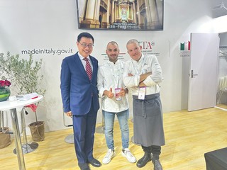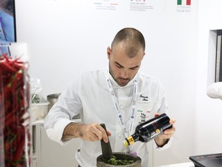 Lo show cooking, con Pastificio Mancini, si è svolto presso la FHC (la fiera alimentare più importante in Asia), aggiunge lo chef Maiano: “Qui abbiamo fatto il pesto a mortaio, con la ricetta tradizionale, quella ‘della nonna’. Abbiamo portato in Cina l’olio extravergine del frantoio Fresia e abbiamo omaggiato la console Tiziana D’Angelo con questo prodotto nostrano.