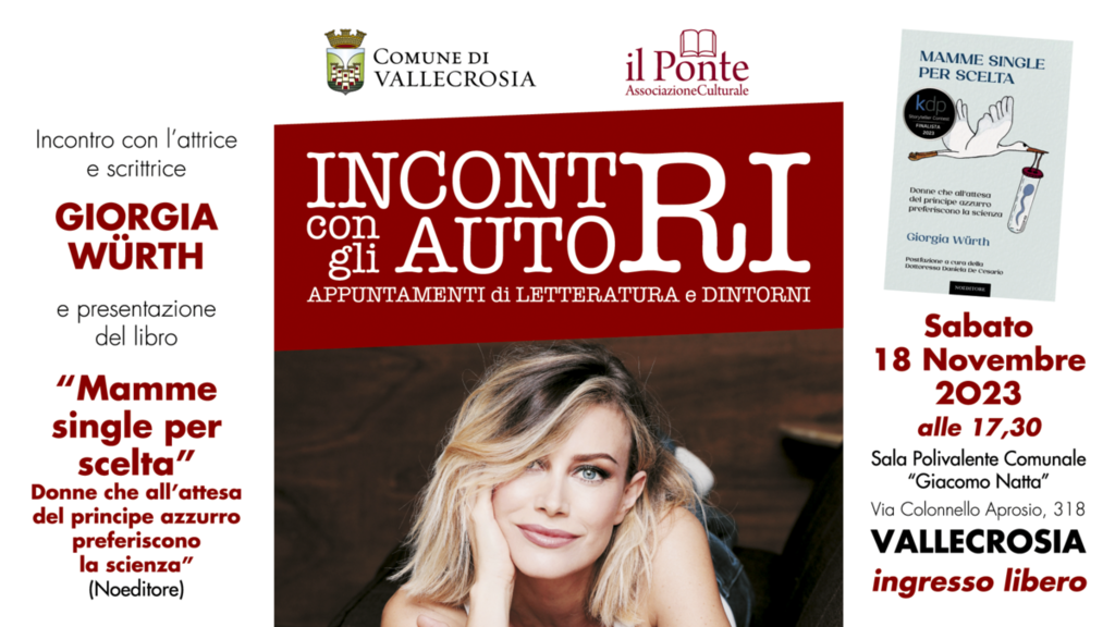 L’appuntamento è per questo sabato, 18 novembre, alle ore 17:30 a Vallecrosia, dove Giorgia Wurth presenterà il suo ultimo lavoro letterario incentrato sulle famiglie non tradizionali e sulla procreazione medicalmente assistita.