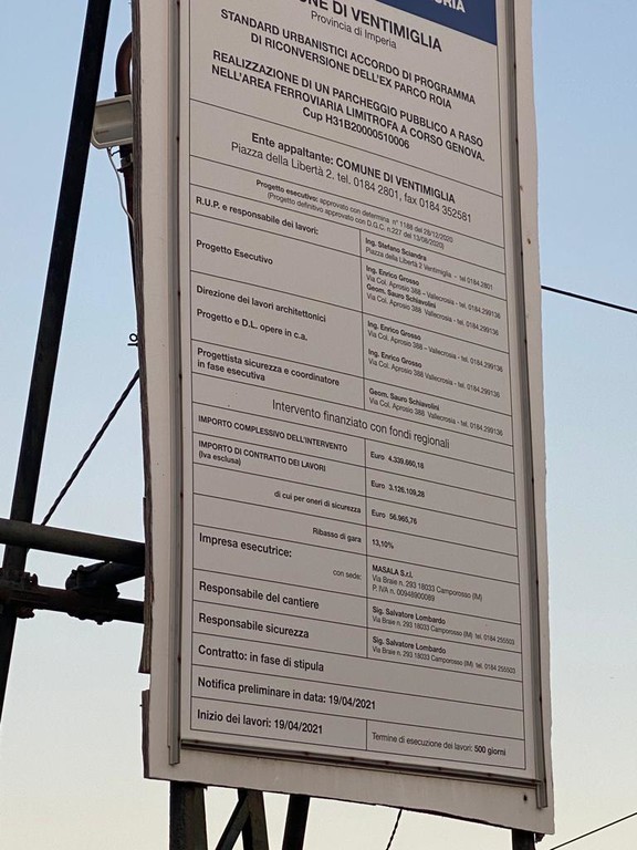"Il cantiere del parcheggio in costruzione in corso Genova è in ritardo. Era iniziato il 19 aprile del 2021 e doveva essere ultimato in 500 giorni" - denuncia l'ex sindaco di Ventimiglia e attuale consigliere comunale di minoranza Gaetano Scullino parlando del parcheggio in costruzione in corso Genova a fianco della ferrovia.
